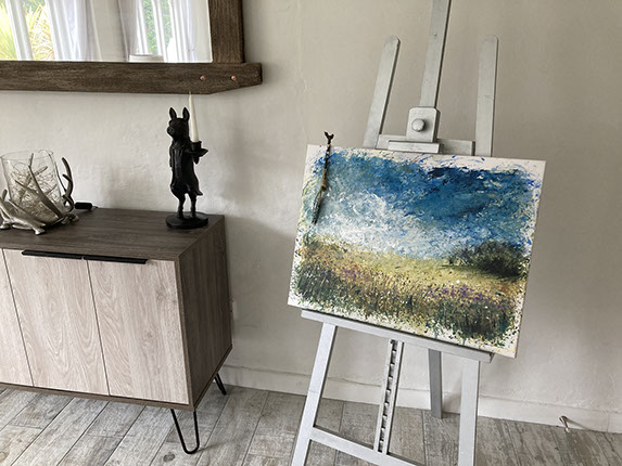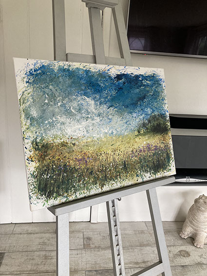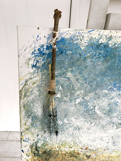 The unique handmade brush is harvest from the materials naturally found in the field that I was painting in.