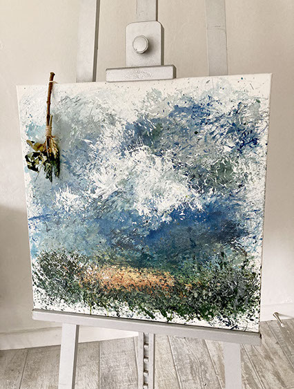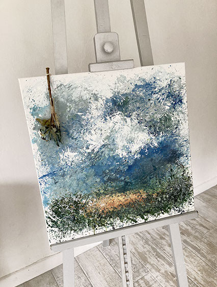 The unique handmade brush is harvest from the materials naturally found in the field that I was painting in.