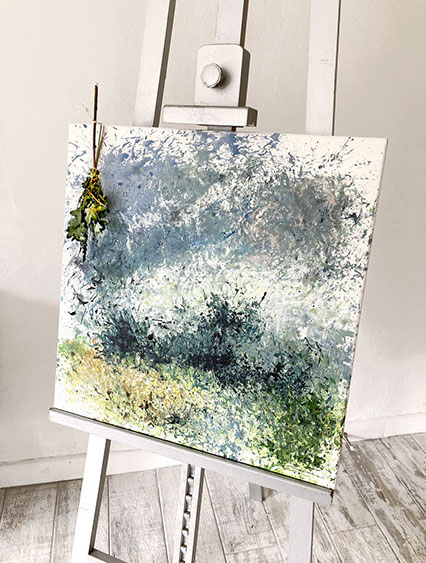 The unique handmade brush is harvest from the materials naturally found in the field that I was painting in.