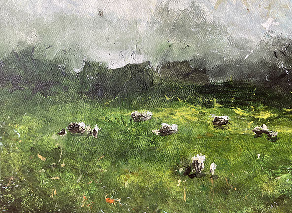 The unique handmade brush is harvest from the materials naturally found in the field that I was painting in.