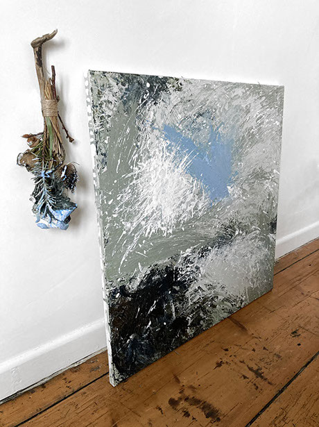The unique handmade brush is harvest from the materials naturally found in the field that I was painting in.