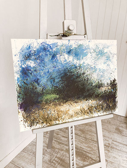 The unique handmade brush is harvest from the materials naturally found in the field that I was painting in.