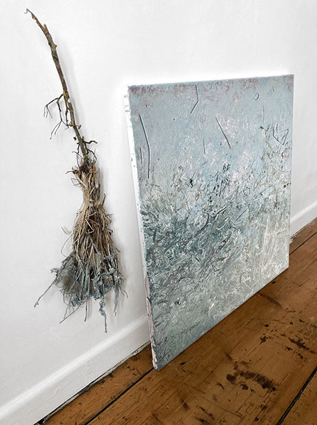 The unique handmade brush is harvest from the materials naturally found in the field that I was painting in.