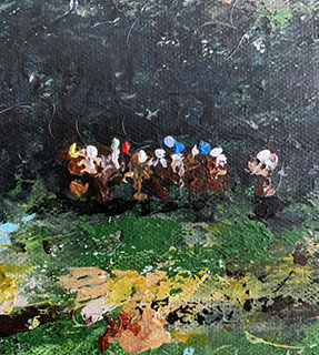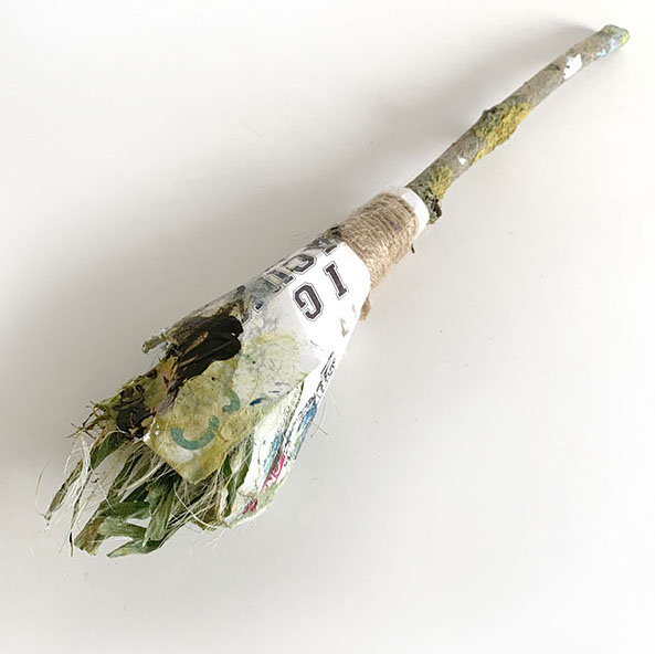 The unique handmade brush is harvest from the materials naturally found in the field that I was painting in and is solely used to create the painting. In a way the landscape is what paints the landscape.
