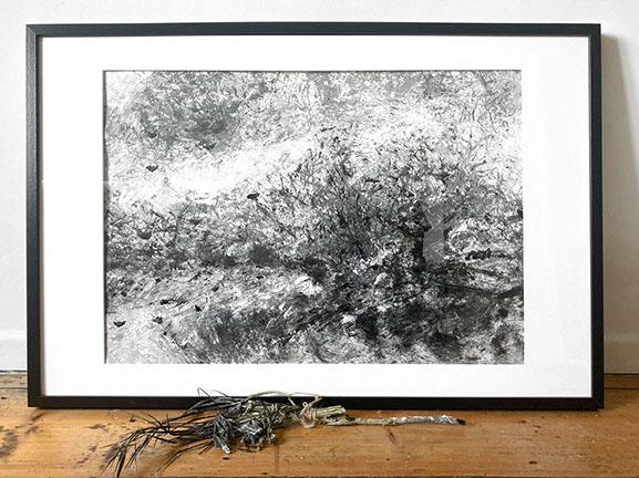 The unique handmade brush is harvest from the materials naturally found in the field that I was painting in.